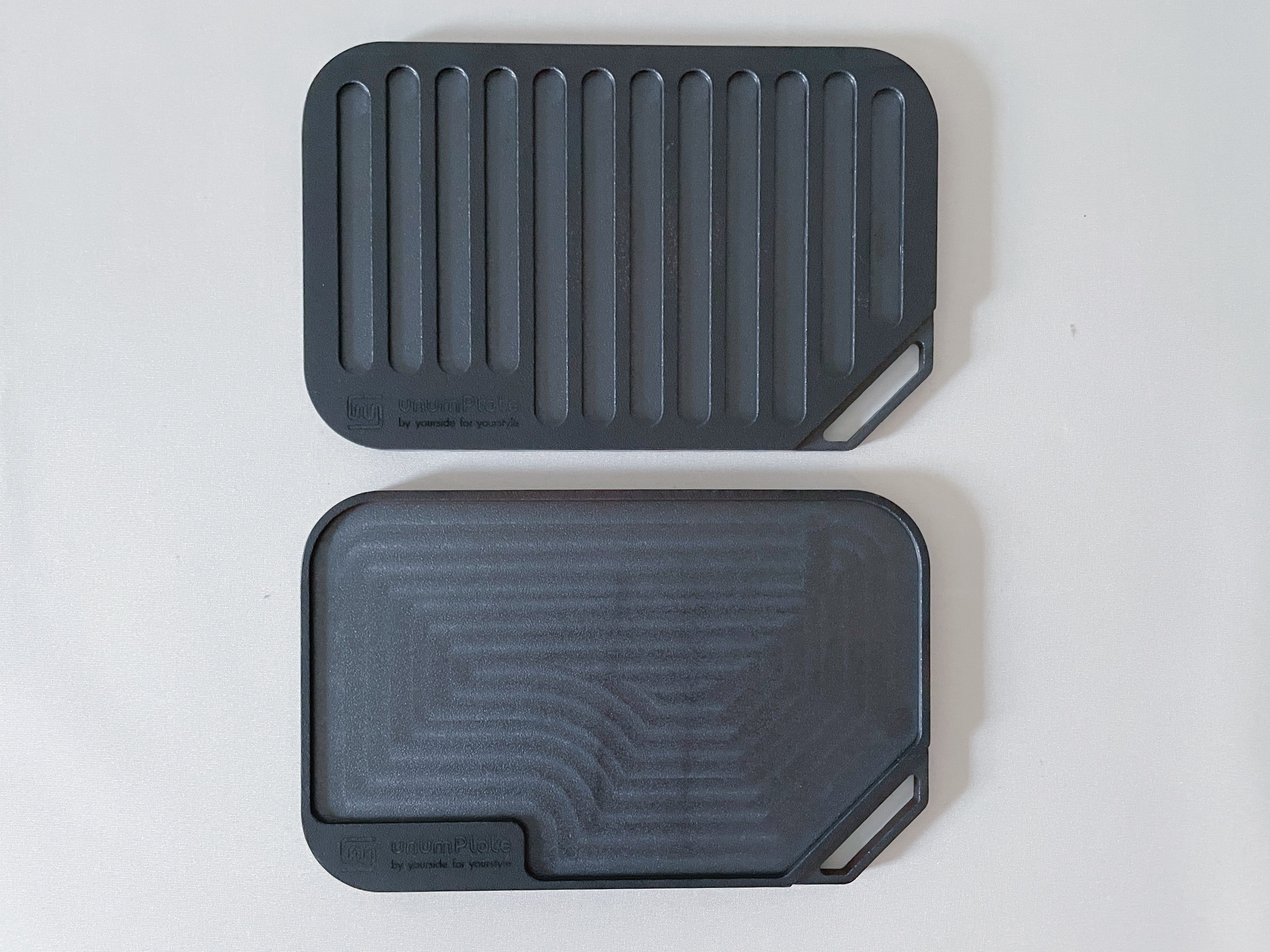 手のひらサイズのステーキがしっかり焼ける鉄板は、2タイプをご用意。9ミリ厚でコンパクトながら抜群の蓄熱性で、お肉をジューシーに焼き上げます。